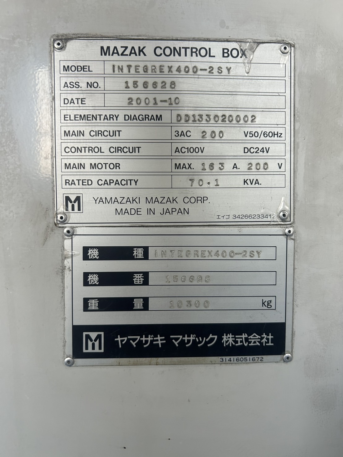 | SJK6800167 | SN156628 | MAZAK INTEGREX | 400-2YS | FUSION 640MT | 2001 | stock |